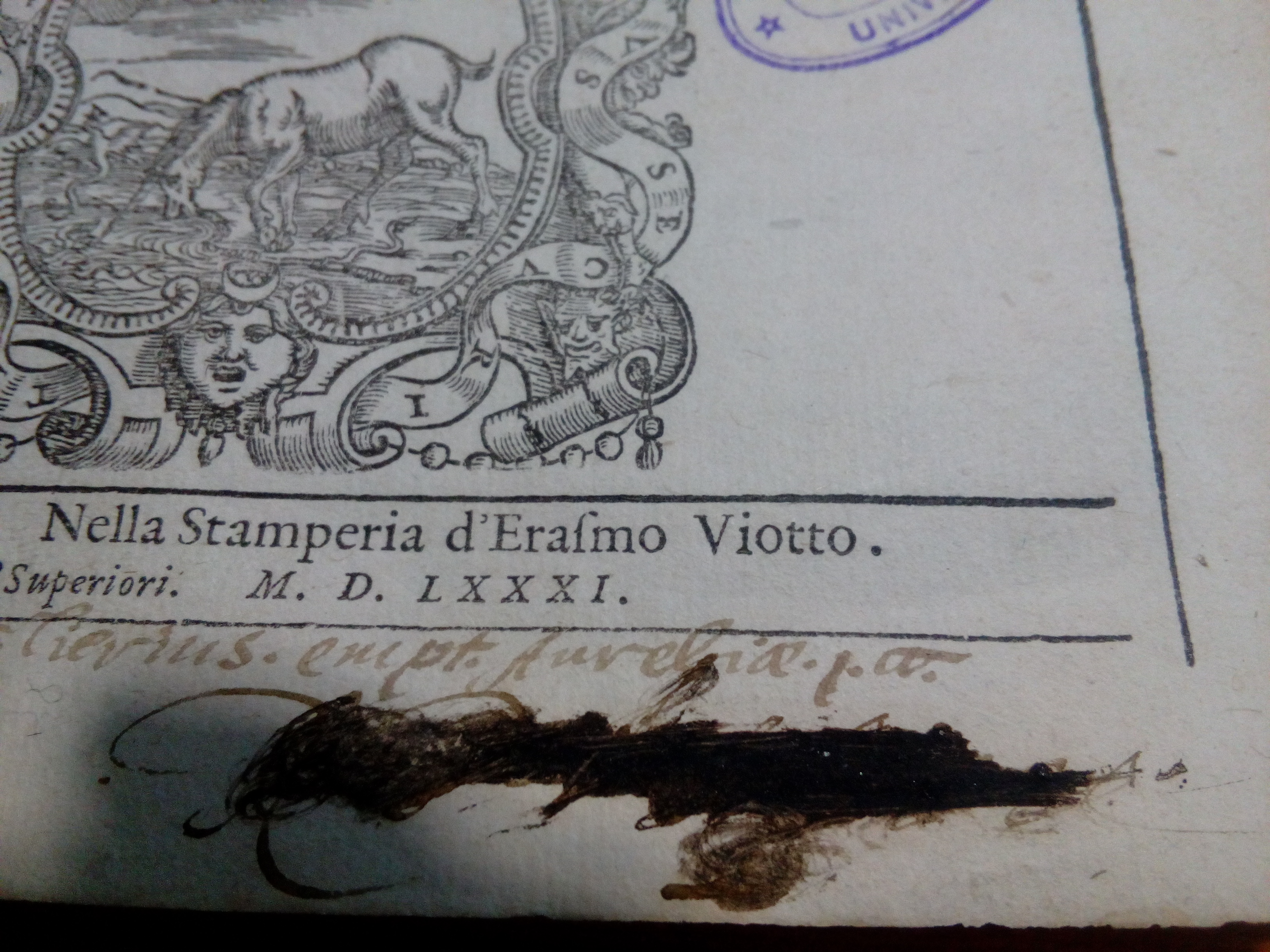 Sur la page de titre, annotation ms. en latin « De Gonesleria Gonesliverus. empt. Aureliae. p. co. » (le livre semble avoir été acheté à Orléans par quelqu’un ayant avoir avec la famille Gonsler ou plus probablement la ville de Gonelle).