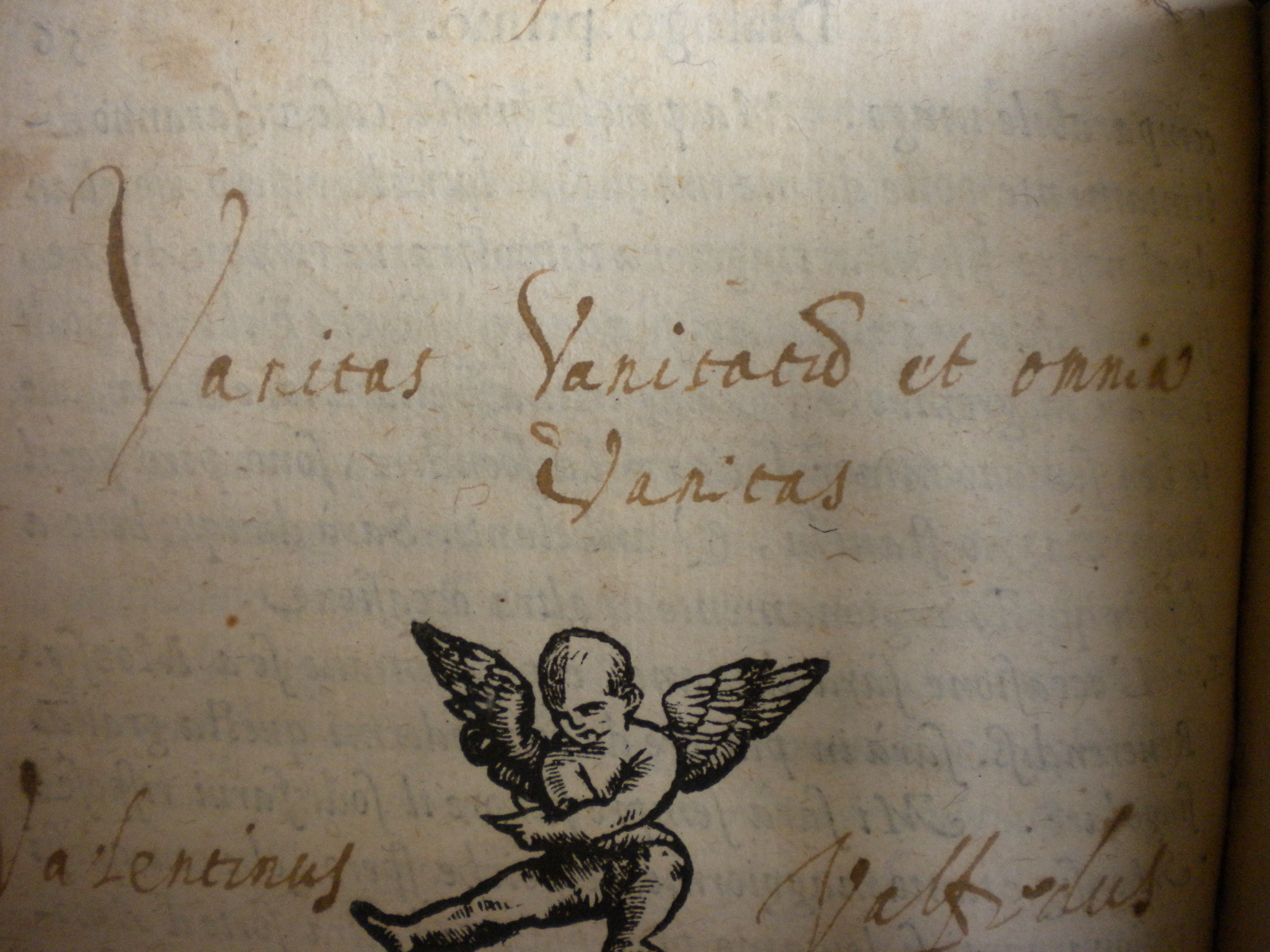 | Description | Notes mss à l’encre brune sur la page du titre « Vanitas Vanitatis et omnia Vanitas ». |