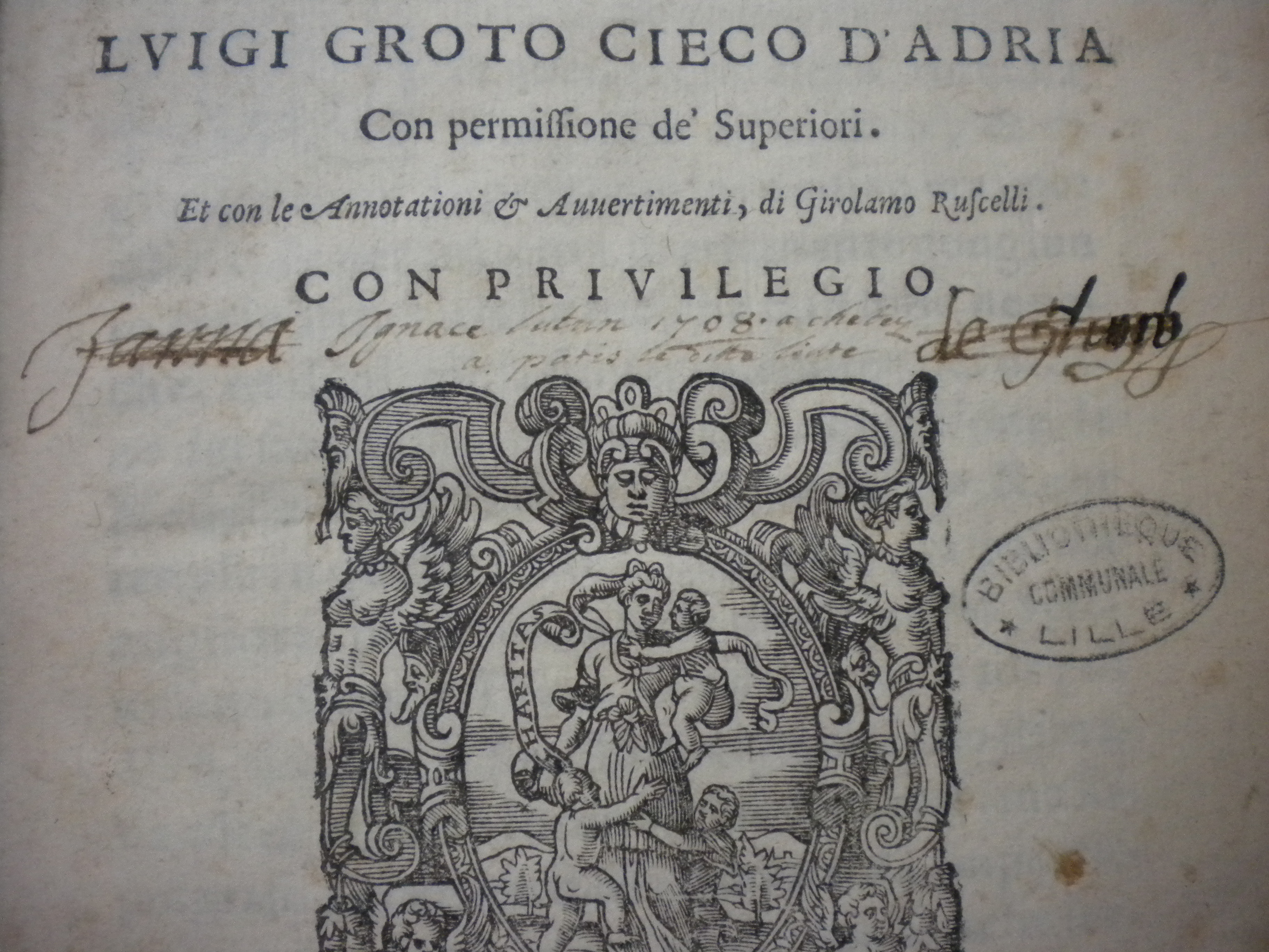 | Description | Sur la page de titre, ex libris ms à l’encre brune « Ignace Lutrin 1708 achetez à Paris le ditte livre ». |