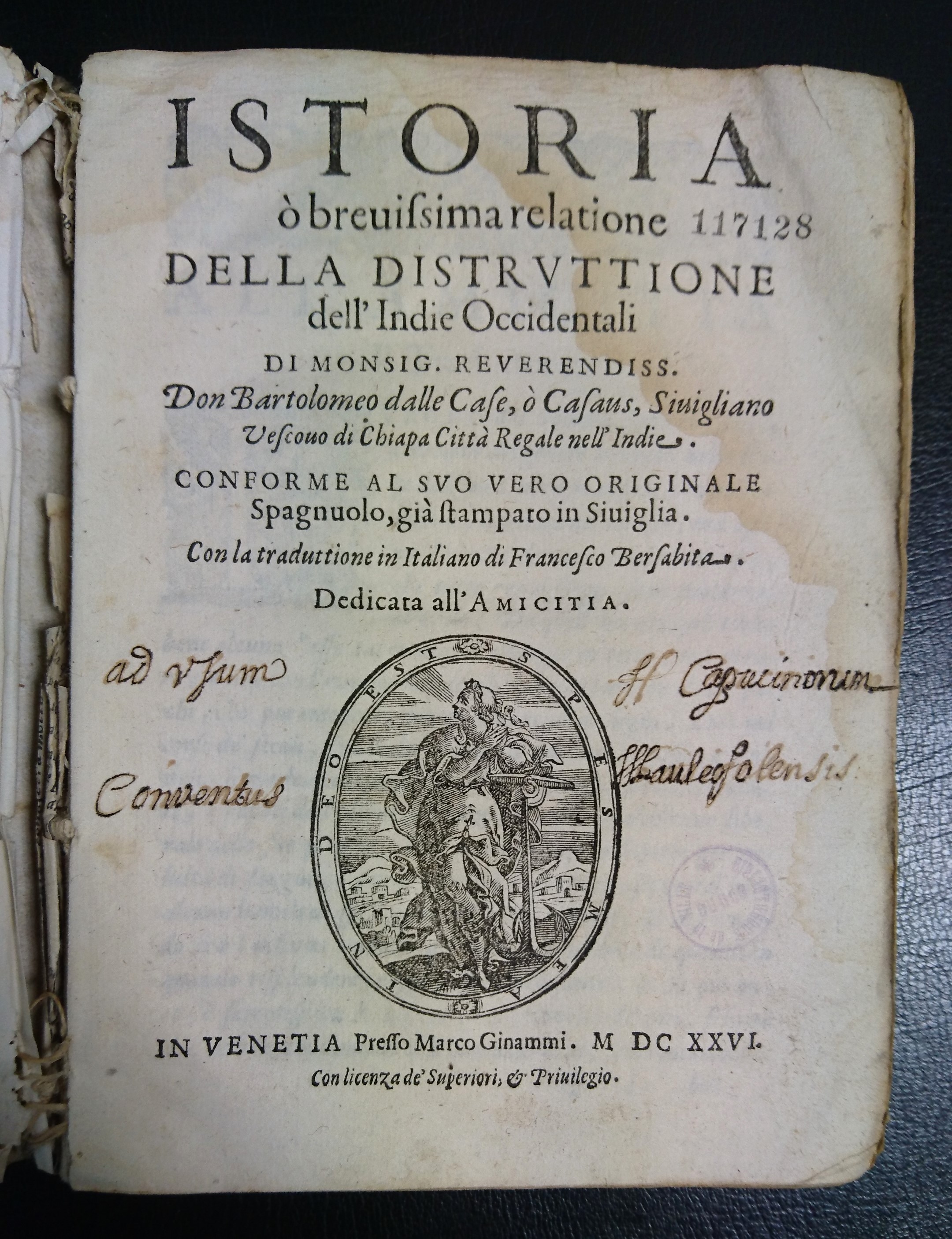 | Titre | Istoria o breuissima relatione della distruttione dell'Indie Occidentali di monsig. reuerendiss. don Bartolomeo dalle Case, o Casaus, Siuigliano vescouo di Chiapa citta regale nell'Indie. Conforme al suo vero originale spagnuolo, gia stampato in Siuiglia. |