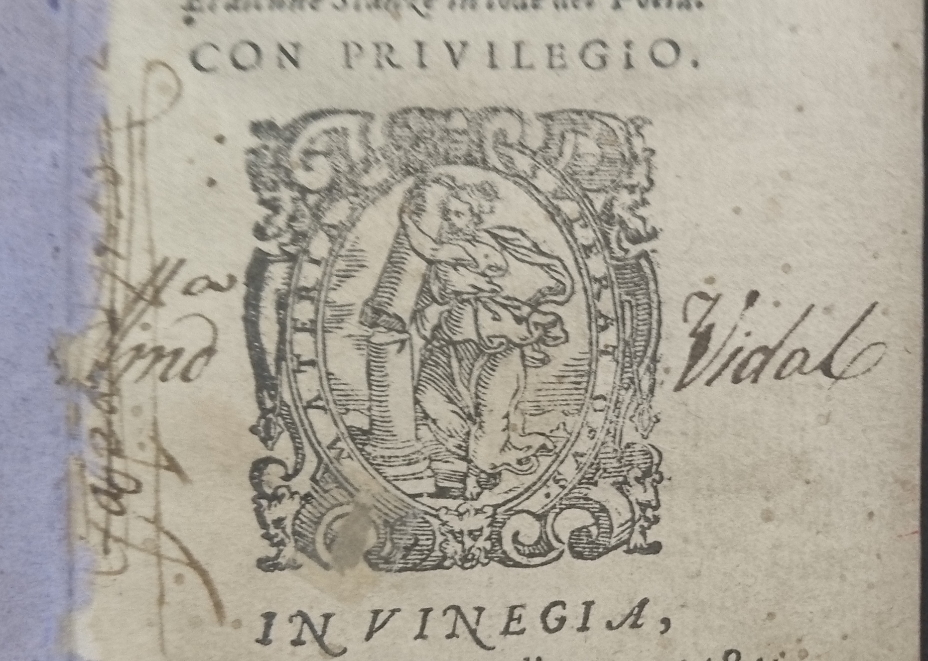 | Description | Sur la page de titre figure un ex-libris ms. écrit à la verticale biffé et un autre ex-libris peut lisible qui renvoit à un certain Vidal. |