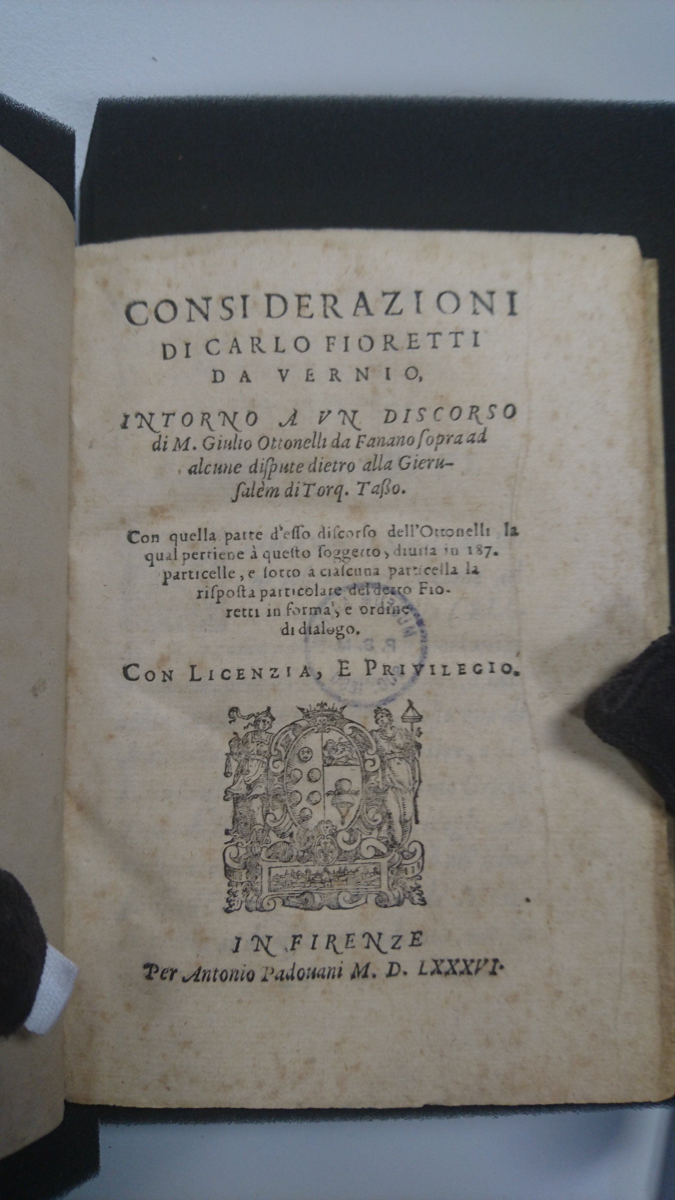 | Titre | Considerazioni di Carlo Fioretti da Vernio, intorno a vn discorso di m. Giulio Ottonelli da Fanano sopra ad alcune dispute dietro alla Gierusalèm di Torq. Tasso. Con quella parte d'esso discorso dell'Ottonelli, la qual pertiene à questo soggetto, diuisa i |