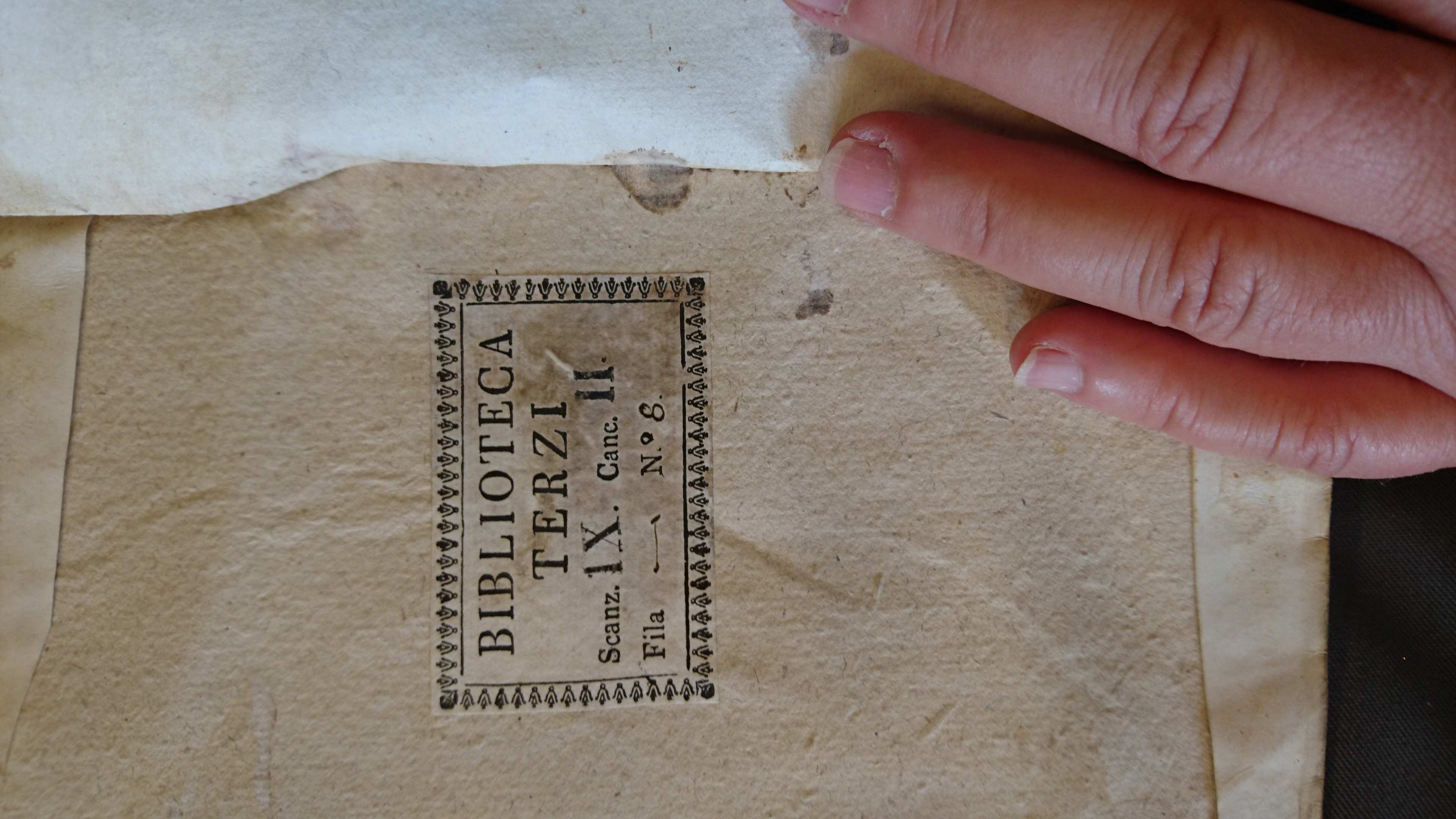 | Description | Ex-libris imprimé de la bibliothèque Terzi, Scan. IX, Canc. II, n°8 |